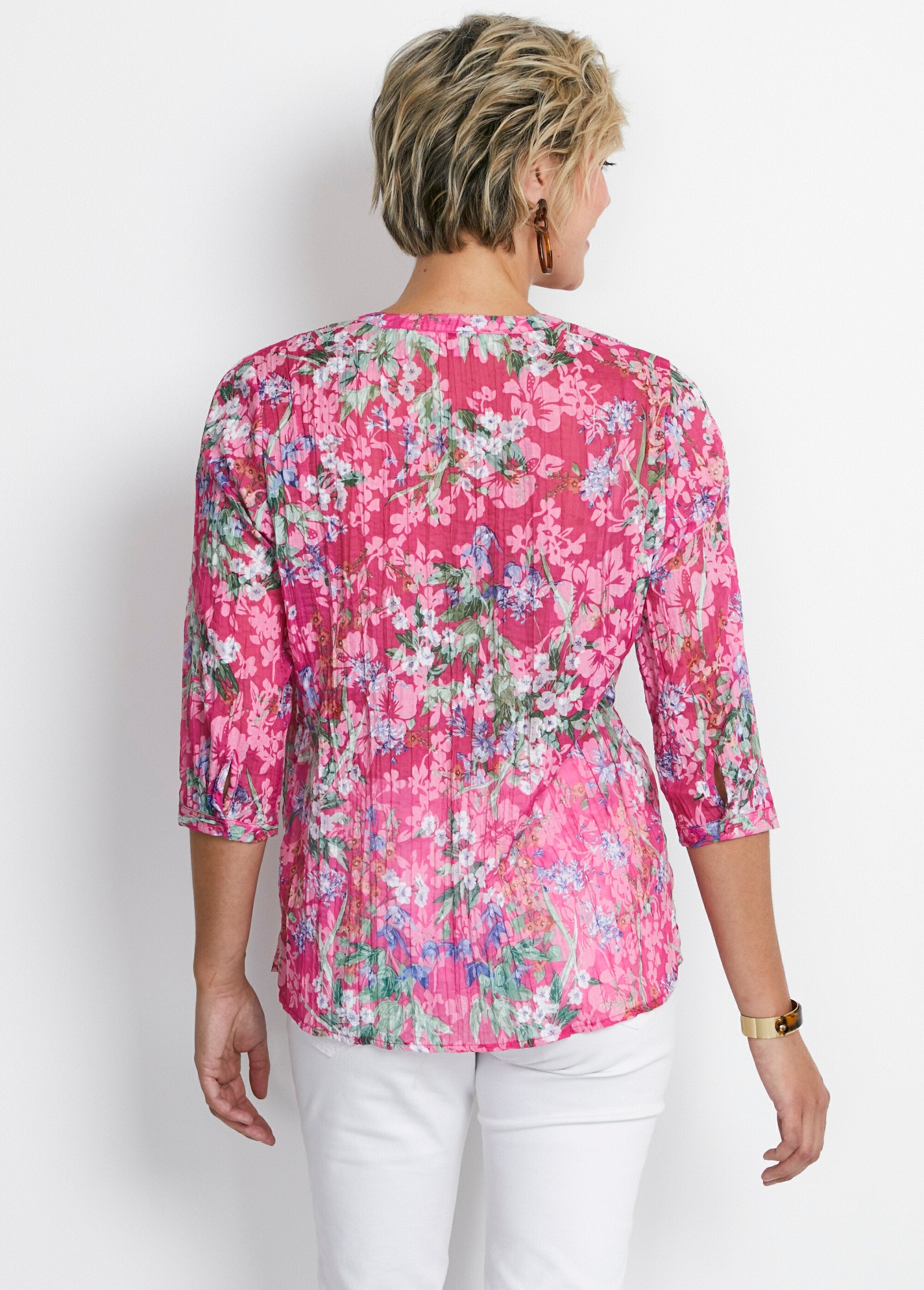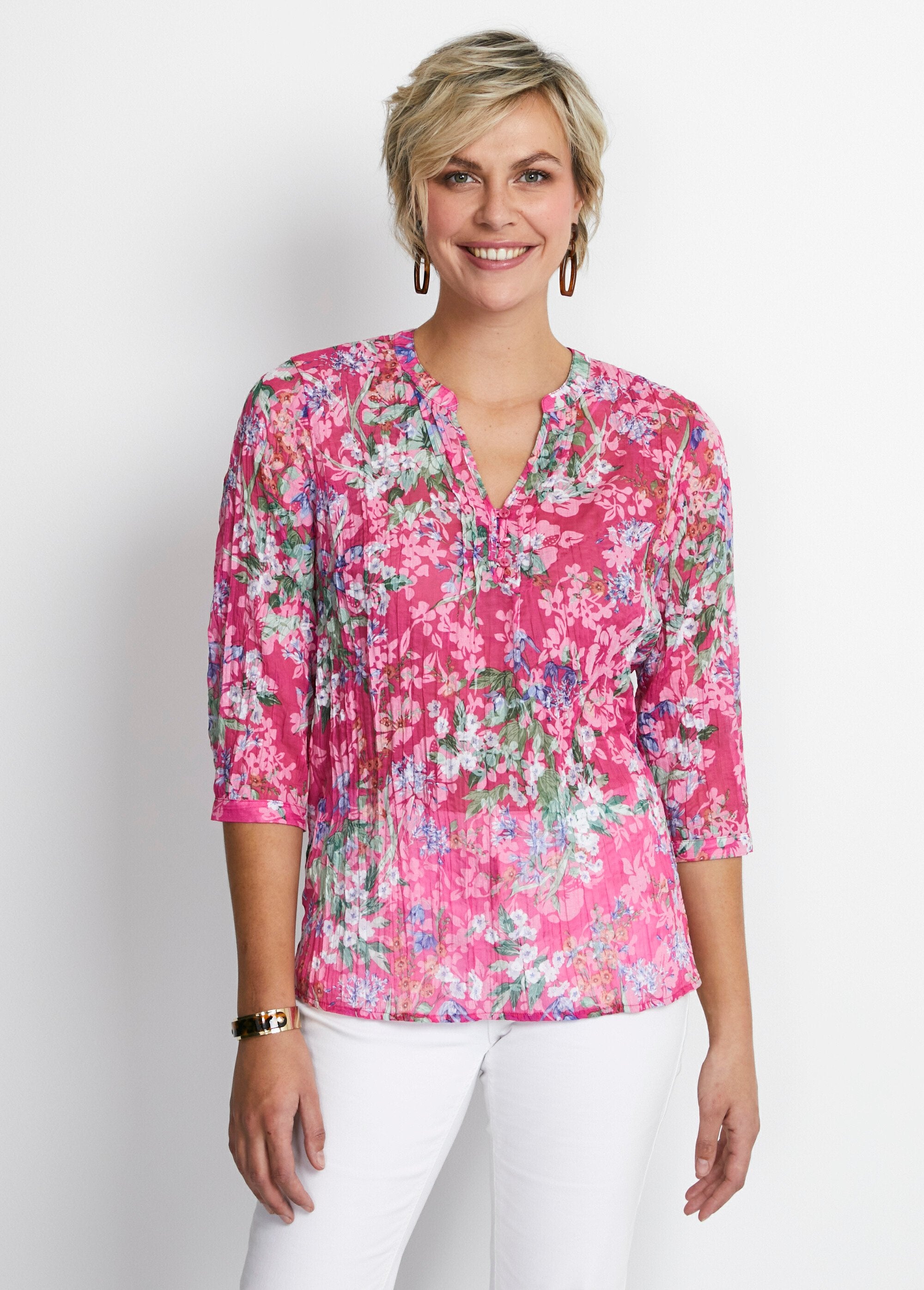 Loose_floral_3/4_sleeve_tunic_Fuchsia_background_FA1_slim Loose_floral_3/4_sleeve_tunic_Fuchsia_background_DO1_slim