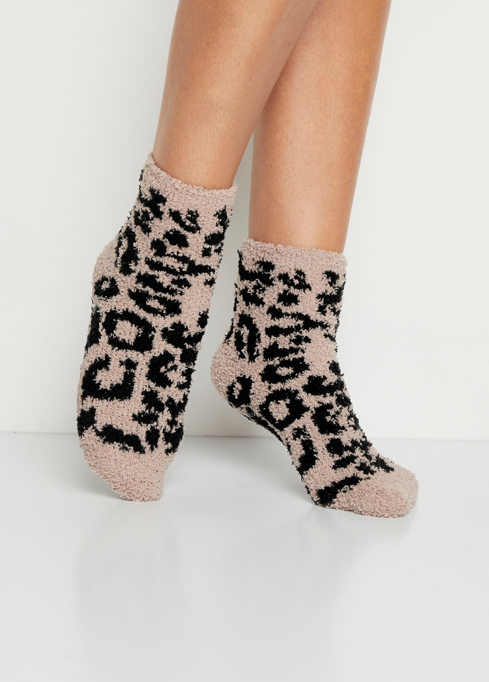 Pack of 2 pairs of Casa socks® indoor socks, with non-slip studded soles, ideal for home use on smooth surfaces. Give in to comfort in style! You'll appreciate their soft material and original style, for absolute comfort... Available in assorted gray (speckled pink/solid gray) and assorted black (speckled beige/solid black).
