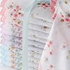 Elegant women's handkerchiefs made from high-quality cotton. Refined simplicity is enhanced with a discreet scalloped band and a printed floral design. Available in assorted colors.